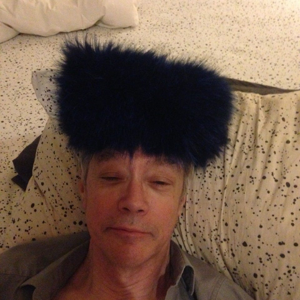 Now, you’ve got me thinking about that fantastic fuzzy blue hat I once bought on Broadway that everyone exclaims about when I wear it, and I look great in it. Maybe I pretended Richard had bought it for me. I think I sent him a picture before I went into the shop and handed over my credit card. In the days we were apart, whenever I asked him, “Should I buy this?” he’d say, “Yes,” because he knew the tragedy of regretting an unbought purchase is a thousand times worse than buying something you can’t remember what you were thinking at the time.