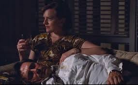 One of the great pleasures of this landscape is there isn’t a murder every five minutes. There is lots of pain. Mostly it’s not articulated. When, on occasion, a character speaks a simple uncensored truth, the dialogue leaps out like a surreal passage from an O’Neill play. It’s so starkly different from the Kabuki pantomimes people mostly perform with each other. When, in season three, a man’s foot is accidentally severed, and we see a window cleaner squeegeeing off blood, it’s shocking because otherwise there is no actual blood in these bloody realms.